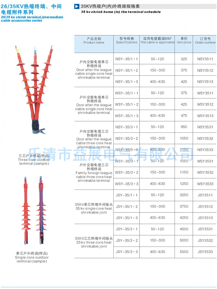 26-35KV單芯戶內 外電纜終端頭價格只提供參考,實際價格請咨詢廠家熱線:0577-61732562