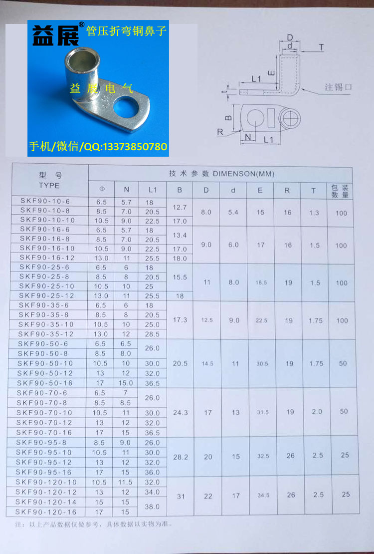 益展電氣-加工非標銅鼻子,管壓線鼻子訂做,JG折彎銅鼻子,